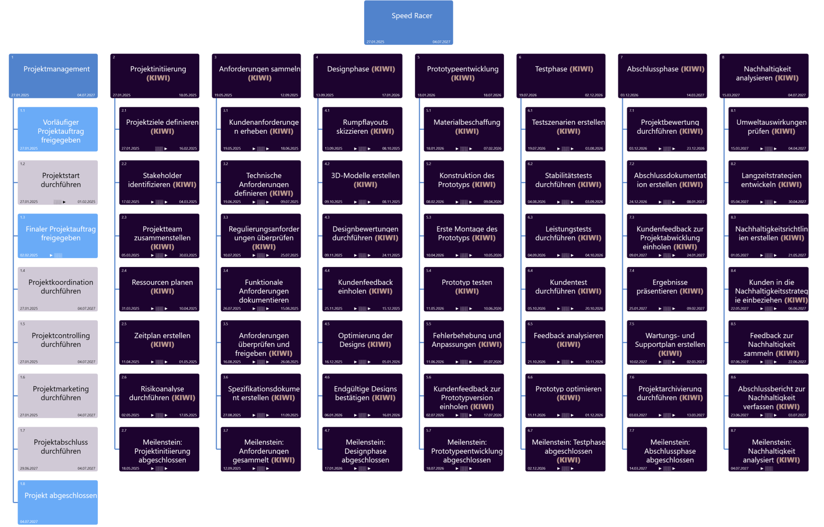 Ein paar Sekunden danach schlägt KIWI Ihnen einen Projektstrukturplan vor - den sie natürlich prüfen und ggf. adaptieren sollten.